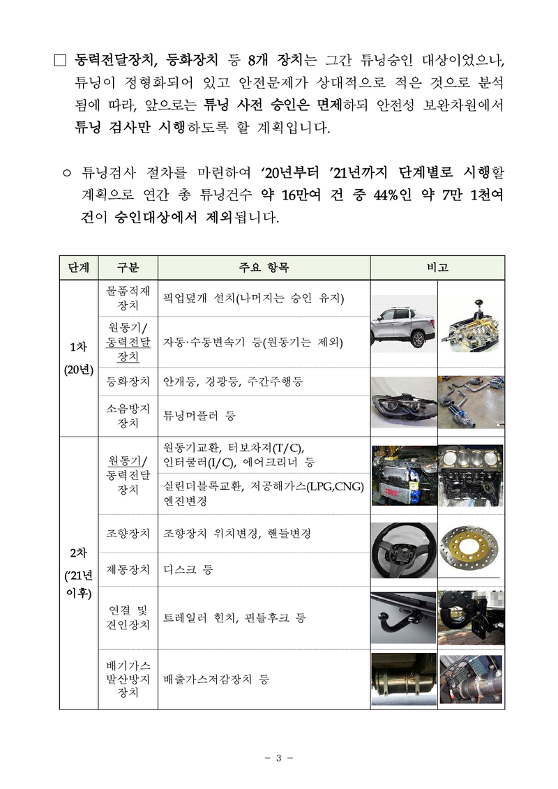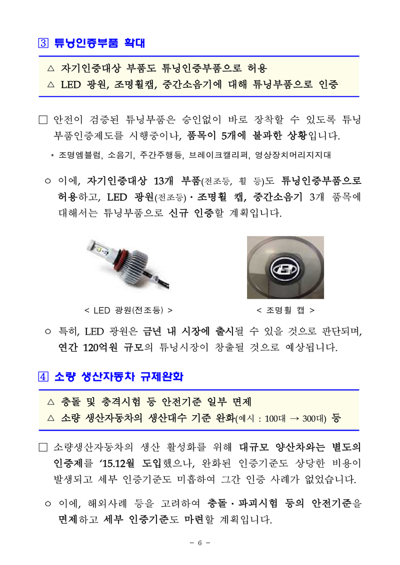 튜닝규제 개선을 위한 방안에 대해 논의하고, ‘자동차 튜닝 활성화 대책’을 발표하였습니다.