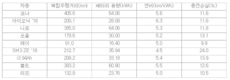 국내 돌아다니는 전기차 효율 입니다